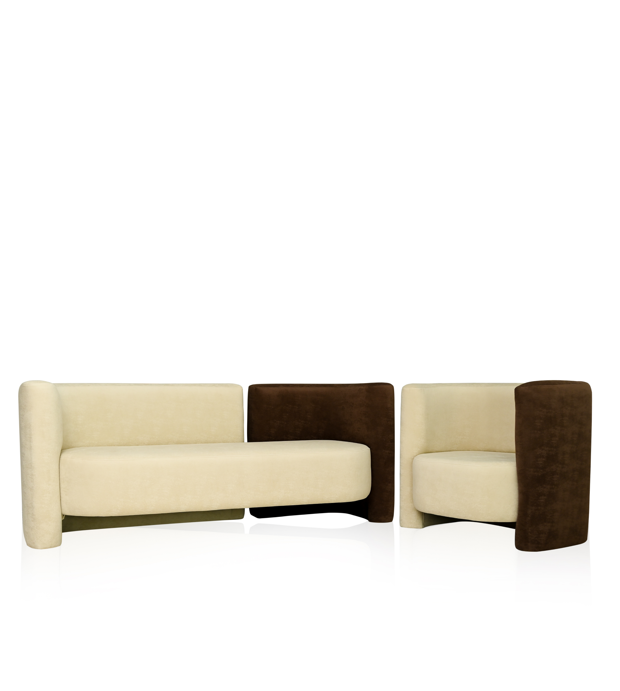 xCustom-made curved sofa with comfort back seat fully upholstered in standard range FibreGuard Supervio 21-Marble fabric. Cushions are excluded.